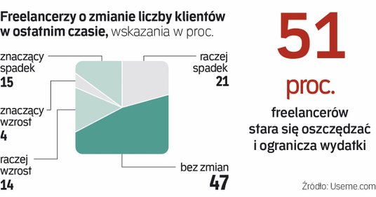 Widać w nich wyraźne pogorszenie sytuacji części wolnych strzelców w porównaniu z ubiegłym rokiem. Wówczas, w podobnym czerwcowym badaniu Useme.eu (która specjalizuje się w obsłudze freelancerów), o spadku liczby klientów i zleceń mówiło zdecydowanie mniej, bo 28 proc. ankietowanych, którzy rzadziej też oceniali ten spadek jako znaczący (11 proc.).