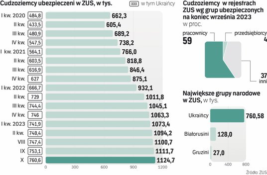 Na koniec października już prawie 1,3 mln obcokrajowców było w Polsce objętych ubezpieczeniami emerytalnymi i rentowymi. To o 13 tys. więcej niż we wrześniu i o ponad 61 tys. więcej niż pod koniec zeszłego roku – wynika z danych, które „Rzeczpospolita” uzyskała w ZUS.