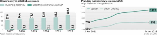 – Napływ pracowników, paradoksalnie, stabilizuje polski rynek pracy, elastycznie reagując na sytuację naszej gospodarki – zauważa Arnold Kowalski. Zwraca też uwagę, że Polska zyskuje również na atrakcyjności jako kraj dla obcokrajowców zdobywających kwalifikacje. Widać to po rosnącej liczbie studentów z zagranicy na polskich uczelniach; według najnowszych danych Ośrodka Przetwarzania Informacji (OPI) w roku akademickim 2022/2023 przekroczyła już 102 tys., czyli była ponadczterokrotnie większa niż dekadę wcześniej.