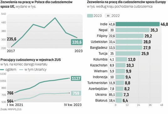 Już nie Ukraińcy i Białorusini, ale Hindusi i Nepalczycy są największą grupą cudzoziemców, którzy ubiegają się i dostają zezwolenia na pracę nad Wisłą – wynika z najnowszego raportu Ministerstwa Rodziny, Pracy i Polityki Społecznej (MRPiPS), które podsumowało ubiegłoroczne dane dotyczące napływu pracowników z zagranicy. Raport potwierdza, że agresja Rosji na Ukrainę zmieniła specyfikę imigracji do Polski, w której wyraźnie wzrósł udział przybyszów spoza Europy, w tym głównie z Azji. Był to m.in. efekt odpływu ukraińskich mężczyzn.
