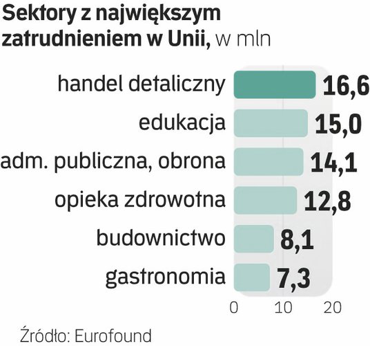 Zarówno w pierwszej, jak i w drugiej dekadzie tego stulecia zatrudnienie w najwyżej opłacanych branżach i specjalizacjach rosło w krajach Unii Europejskiej znacznie szybciej niż w najgorzej opłacanych zawodach – wynika z najnowszego raportu Europejskiej Fundacji na rzecz Poprawy Warunków Życia i Pracy Eurofound. Według jej danych w latach 2011–2023, gdy w Unii Europejskiej przybyło 14,3 mln nowych miejsc pracy, aż 11,6 mln znalazło się w górnym kwintylu, wśród 20 proc. najlepiej opłacanych stanowisk.