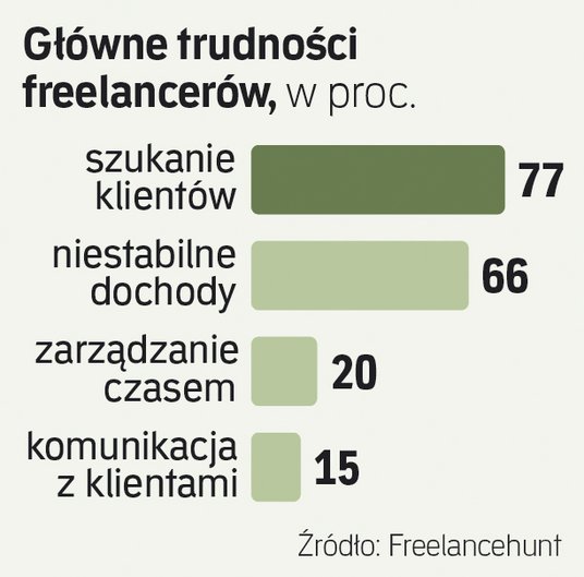 Prawie połowa badanych pracuje do 20 godzin w tygodniu, a co piąty – do 30 godzin tygodniowo, co oznacza, że freelancing jest najczęściej dorywczym zajęciem. – Ponad połowa freelancerów nie traktuje freelancingu jako jedyne źródło dochodu, choć znaczny odsetek specjalistów (ponad 43 proc.) wybiera freelancing jako główne miejsce pracy – zaznacza Valentyn Ziuzin, prezes Freelancehunt.