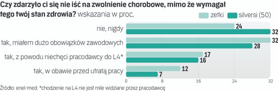 – Dla najmłodszych praca jest tylko jedną ze składowych udanego życia, a dbałość o własne zdrowie, zarówno fizyczne, jak i psychiczne, znajduje się na szczycie wyznawanych wartości. Stąd częstsze korzystanie ze zwolnień lekarskich w sytuacjach, w których pokolenie silversów stawia się na stanowisku pracy – tłumaczy Krzysztof Urban, lekarz i zastępca dyrektora medycznego w ogólnopolskiej sieci medycznej Enel-Med, komentując wyniki jej tegorocznego badania postaw i zachowań zdrowotnych 1,4 tys. Polaków.