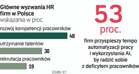 Dla niemal połowy średnich i dużych firm w Polsce najważniejszą sprawą do rozwiązania w perspektywie najbliższych lat jest odpowiedni rozwój kompetencji pracowników i dopasowanie ich do zmieniających się wymagań m.in. w zakresie technologii – dowodzą wyniki udostępnionego „Rzeczpospolitej” badania „3R w HR: Rekrutacja, Rozwój i Retencja”, którym w IV kwartale zeszłego roku EY Polska objęła 208 średnich i dużych przedsiębiorstw.