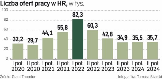 „Rzeczpospolita” jako pierwsza opisuje raport pokazujący obecną sytuację zawodową pracowników szeroko rozumianego obszaru HR na bazie zebranych przez firmę Element danych z 50 największych portali rekrutacyjnych. W ubiegłym roku ukazało się tam nieco ponad 71,2 tys. ogłoszeń o pracy dla HR-owców. To niemal o 30 proc. mniej niż w 2021 r. i aż o połowę mniej niż w rekordowym 2022 r., gdy HR-owcy mieli do wyboru prawie 143 tys. ofert.