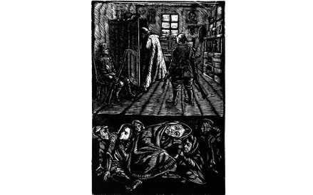 Cykl drzeworytów „Getto lwowskie" wykonał w drugiej połowie lat 40., po powrocie do kraju. – Był to cykl nieprzeznaczony na żadną wystawę. Zrobił go, żeby przemyśleć i uwolnić się od traumatycznych zdarzeń – mówi Maria Anna Potocka, kuratorka obecnego pokazu.