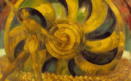 Eugen Kron jest twórcą serii czarno-białych litografii, prezentowanych w części ekspozycji, poświęconej wizjom nowego człowieka. Artysta po doświadczeniach I wojny, podejmował refleksję na temat rozwoju cywilizacji, wzlotów i upadków człowieka. W serii zatytułowanej „Człowiek słońca” wykreował utopijny wizerunek człowieka przyszłości, przybierającego postać idealnego herosa.