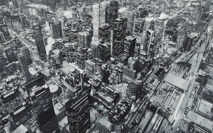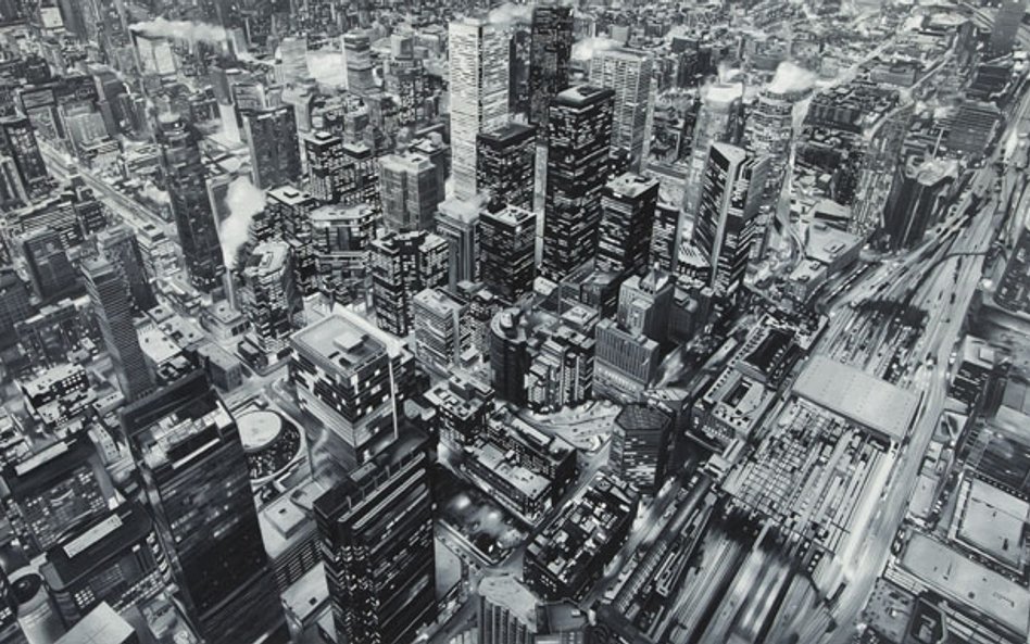 Kotera poprzez malarską grę światła i perspektywy na płótnie. A Pękacz, używając oryginalnej techniki, która pozwala na podwójne widzenie dzieła. W świetle dziennym podziwiamy więc rozległą panoramę metropolii. A gdy spojrzymy na „Psycho city” w świetle ultrafioletowym, dostrzeżemy tajemnicze znaki, kręgi, linie i napisy tworzące „metaobraz” z ukrytym przekazem, zapisanym autorskim alfabetem artysty.