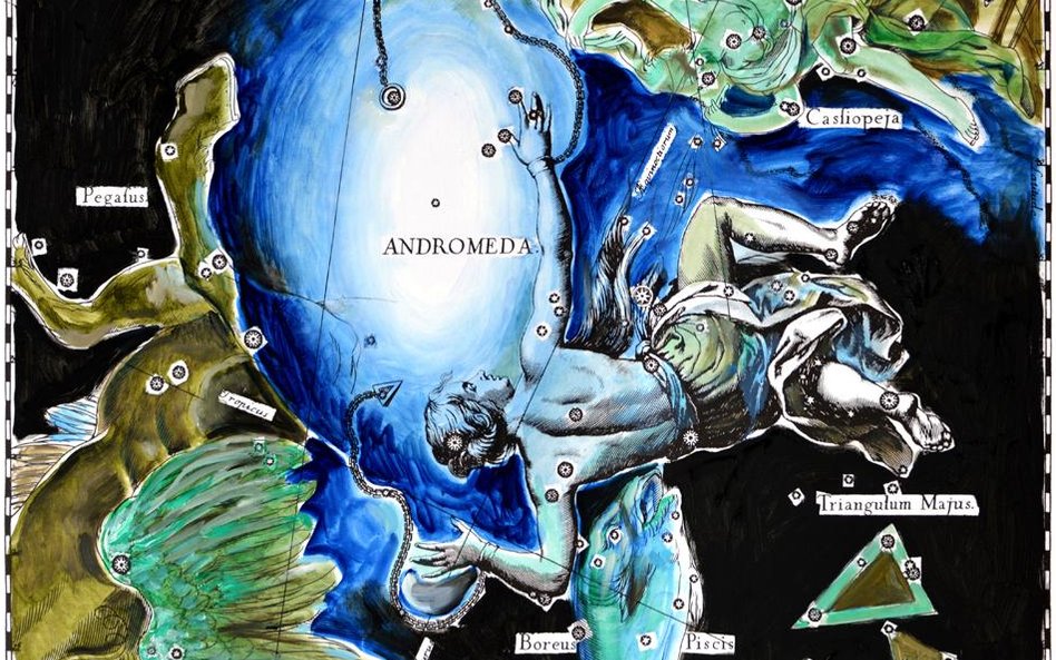 Czy ktoś wiedział, że XVII-wieczny astronom z Gdańska poza geniuszem matematyczno-konstruktorskim wyróżniał się jeszcze talentem plastycznym? Heweliusz osobiście – przepięknie! – zilustrował swój „Atlas ciał niebieskich". Umieścił tam 56 rycin konstelacji gwiezdnych, zinterpretowanych w formie figur, zgodnie z tradycyjną, mitologiczną konwencją. Tak więc Centaurus jest koniem z torsem mężczyzny; Aquarius – młodzieńcem wypuszczającym z dłoni strumienie wód; Andromeda to szybująca w przestworzach młoda kobieta.
