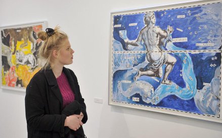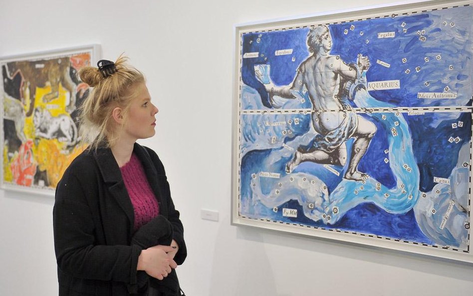 W Państwowej Galerii Sztuki artysta pokazał po raz pierwszy prace namalowane na... rysunkach Jana Heweliusza. No, nie na oryginałach – na fotograficznych kopiach powiększonych na płótnach.