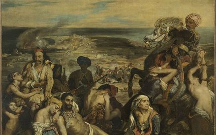 Eugéne Delacroix w ewidentny sposób nawiązał zarówno do wydarzenia historycznego, jak i do słynnego obrazu „Tratwa Meduzy", który wyszedł spod pędzla Théodore'a Géricaulta. Powstałe w 1819 roku płótno szokowało współczesnych prawie nagimi ciałami rannych lub martwych mężczyzn, rozbitków rozrzuconych na zagubionej w pełnym morzu tratwie. Obraz bulwersował realizmem rysunku oraz brunatno-zielonym kolorytem podkreślającym dramatyzm sytuacji.