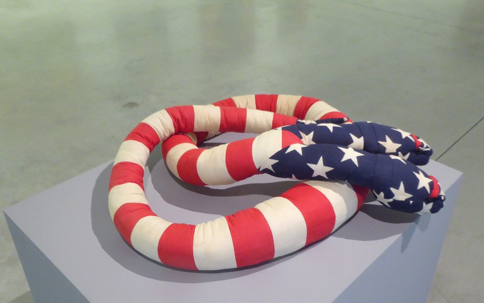 Oglądając rzeźbę z tkaniny „Wielogłowy patriota” Melissy Vandenberg z USA, zastanawiamy się na przykład, dlaczego węża grzechotnika artystka „ubrała” w barwy amerykańskiej flagi i dodała mu dwie głowy? Komentarz obok podpowiada nam, że już od XVIII wieku ten często spotykany w Ameryce gatunek węża, był wykorzystywany jako znak formującego się państwa i jego siły. A jego dwie głowy mają wyrażać krytyczną ocenę artystki dwupartyjnego systemu politycznego w Stanach.