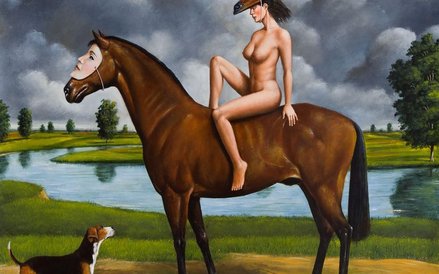 Rafał Olbiński kreuje w obrazach i plakatach świat pełen metafor. Nazywa się go często artystycznym spadkobiercą René Margitte’a, choć jego wyobraźnia czerpie i z innych źródeł. „Sny na jawie” Olbińskiego opierają się na niekończącej grze wyobraźni o rozległych asocjacjach. Poezja nieraz łączy się w nich ze zmysłowością, jak w wystawionym na aukcje obrazie „Powierzchowne rozumienie pozorów” (cena wywoławcza: 24 tys. zł; estymacja 45-60 tys. zł) z nagą piękną kobietą na koniu na tle na pozór spokojnego pejzażu, ale z burzowo skłębionymi chmurami, zwiastującymi tłumione namiętności.