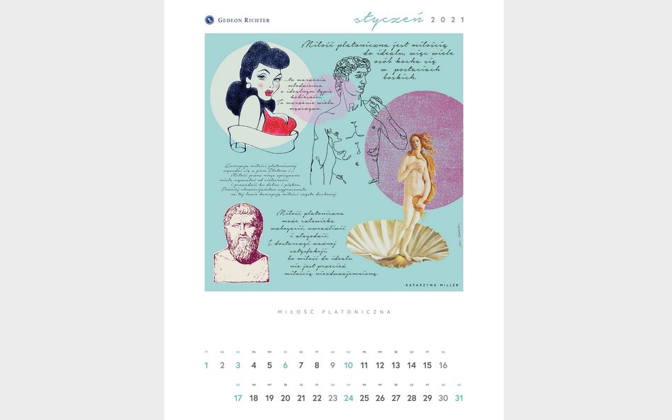 W edycji kalendarza 2021 pierwsze skrzypce gra Andrzej Pągowski, bo on jest autorem wszystkich grafik. Przewodni temat dotyczy już nie tylko kobiet, bo miłość dosięgnąć może każdego. Dlatego grafiki, przypominające karty szkicownika, czy dziennika, inspirują i uzupełniają wypowiedzi dwojga znanych psychoterapeutów: Katarzyny Miller i Wojciecha Eichelbergera, przez co na miłość możemy spojrzeć z perspektywy kobiecej i męskiej.
