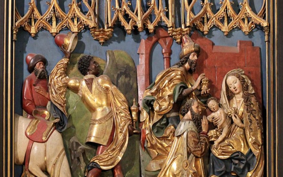 Do ważnych person zaliczają się trzej królowie. Widzimy ich składających hołd Dzieciątku. Żeby dostrzec płaskorzeźbę z tą sceną, trzeba trafić na moment, gdy ołtarz jest otwarty – „Pokłon” zajmuje dolną kwaterę lewego skrzydła.