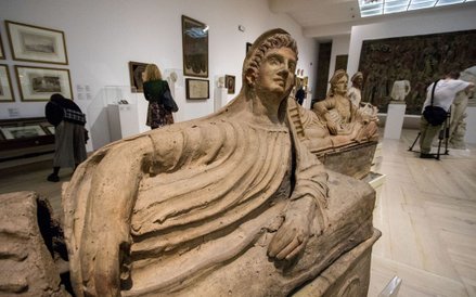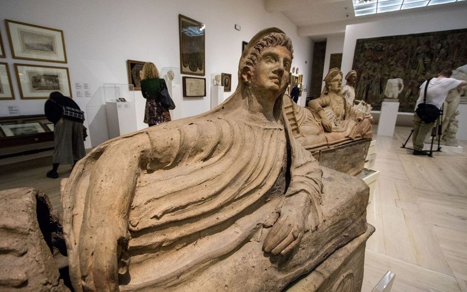 I tak każde dzieło wiedzie do jakiejś historii lub legendy. Ze sztuki starożytnej pochodzą sarkofagi etruskie z III/II w. p.n.e oraz egipskie z VIII w. p.n.e. Pierwsze, wykonane z terakoty zdobią rzeźby półleżących postaci. Malowane kartonaże drugich mają kształty zmumifikowanej postaci.