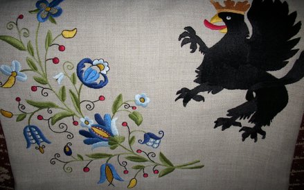 Ręczne hafciarstwo kaszubskie szkoły żukowskiej z kolei sięga XIX wieku. Kaszubskie artystki nadal zdobią tym haftem obrusy, serwetki, fartuszki, makaty, torby. Motywy kwiatowe (tulipany, rozety, koniczyny) występują zwykle w kolorach: odcieniach niebieskiego, oliwkowej zieleni, żółtym, czerwonym i czarnym.