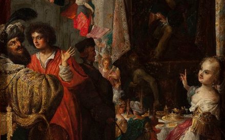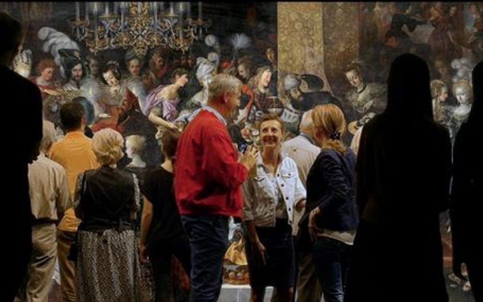 Przywołuje w nim obraz Strobla, przedstawiający arystokratyczny tłum biesiadników, w którym postacie biblijne mieszają się z historycznymi z XVII w. z całej Europy. A zarazem dodaje plan współczesny z udziałem widzów w muzeum, którzy niepostrzeżenie zamieniają się w klientów supermarketu.
