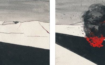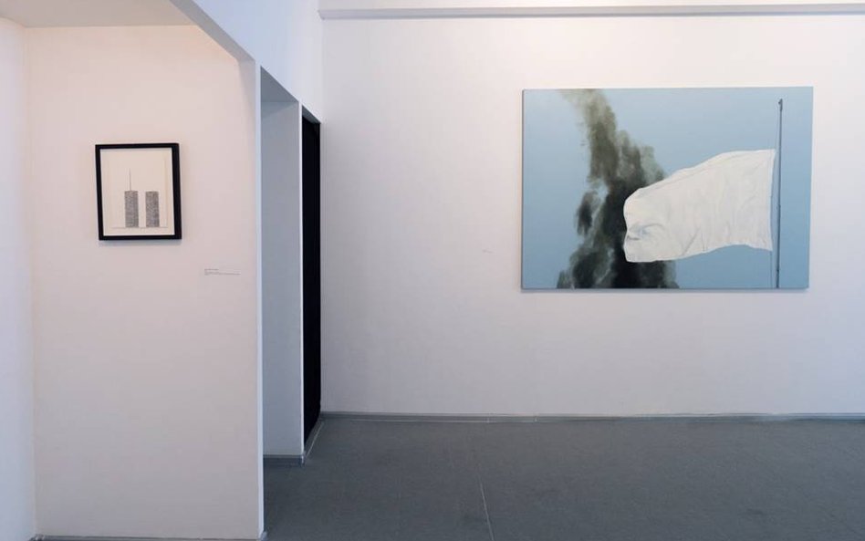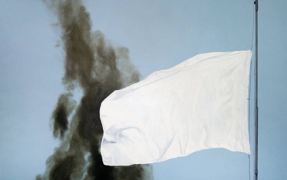 Jest i obraz „Game over”, w którym na stalowo-błękitnym tle łopocząca biała flaga zakrywa czarny dym. Zero zbędnych szczegółów, nic, co odwracałoby, albo rozmywało uwagę widza.
