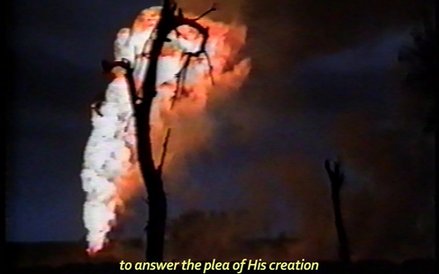 Najbardziej tajemnicza instalacja, to „Pompa entropii" Mehraneh Atashi, Iranki mieszkającej w Amsterdamie. W mroku ustawiono urządzenia przywołujące na pamięć instrumentarium alchemika. Poruszają się pod wpływem płomienia i wydają odgłosy, wzmocnione głośnikami. Po co maszyneria została wprawiona w ruch? Żeby wtłoczyć witalną energię w martwy korzeń i suche liście. Ale żadne siły nie przywrócą martwoty do życia. Animowane zostały popioły życia. Świetna metafora.