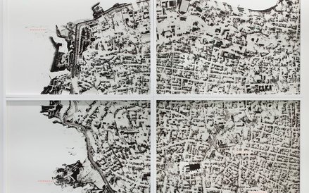 Zwróciłam też uwagę na trzy fotografie nieregularnych kształtów autorstwa Nicolasa Grospierre'a (tak, to dobrze nam znany polsko-szwajcarski artysta). Zdjęcia powstały w Teherańskim Muzeum Sztuki Współczesnej, gdzie większość eksponatów przeniesiono do magazynów, do których żaden widz nie zagląda. Powód? Kolekcja nie przystaje do obecnej polityki państwa. Jednak tego obiektu nie dało się przenieść. Po prostu jest za duży. Minimalistyczna rzeźba – zbiornik wypełniony olejem, którego taflę pokrywają drobinki kurzu, stał się czarnym lustrem odbijającym otoczenie. Grospierre starał się zmieścić obiekt w kadrze, co oczywiście nie mogło się udać. W efekcie, na zdjęciach widzimy fragmenty podziemnego atrium, odwróconego do góry nogami. Symboliczne.