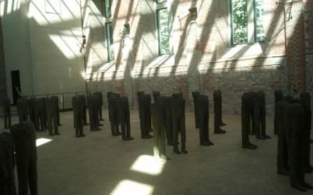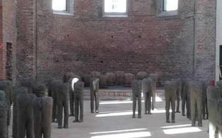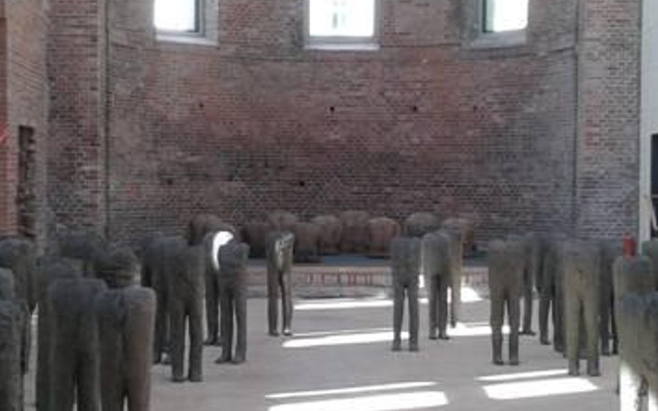 Jestem przekonana, że Magdalenie Abakanowicz odpowiadałoby miejsce ekspozycji: kościół ewangelicki świętej Elżbiety w Berlinie. Monumentalny, surowy, pozbawiony jakichkolwiek ozdób, z widoczną strukturą i fakturą cegieł. Takie same są jej prace, które tam się znalazły: „Plecy"(1976) w absydzie ołtarza głównego i „Bambini" (1998-99) w otwartych nawach.