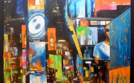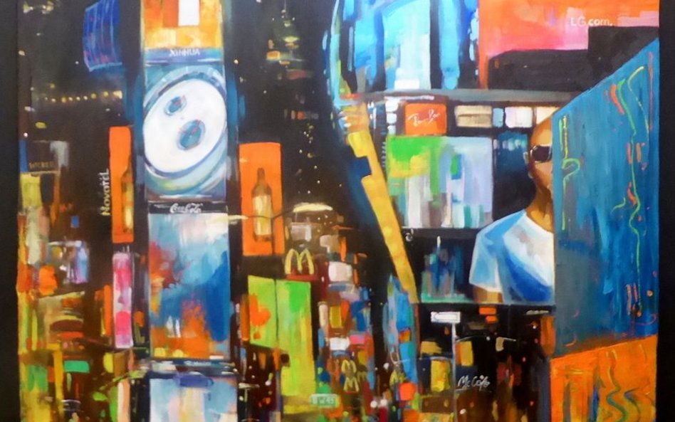 Z jednej strony Martę Pleskaczyńską fascynowało życie wielkiej metropolii. Miejskie pejzaże na jej płótnach, choć zawsze malowane nocą, pełne są żywych barw i neonowych świateł. Jaskrawo kolorowe reklamy, afisze, banery ożywiają ulice i magnetycznie wciągają w wir sztucznie intensywnego życia. Patrząc na płótna artystki niemal fizycznie odczuwamy energię i dynamikę miasta, wprawiającego przybysza w stan iluminacji i oszołomienia.