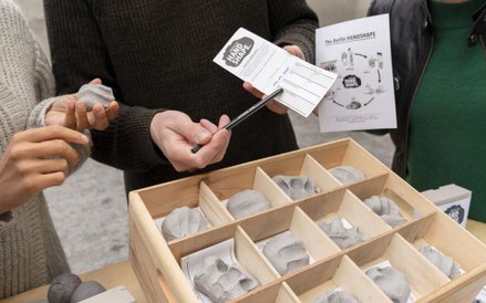 Druga instalacja, zatytułowana „Berliński uścisk dłoni", już w przyszłym roku zamieni się w berliński pomnik. Na intrygujący pomysł wpadła austriacka artystka Meike Ziegler, która postanowiła uwiecznić właśnie uściski tysięcy ludzi. W tym celu wraz z grupą współpracowników zbierała w specjalnej plastelinie odciski osób podających sobie rękę. Później zostaną odtworzone w trwalszym niż plastelina materiale i zawisną w wielkiej ramie pomnika.
