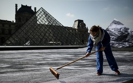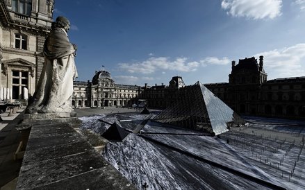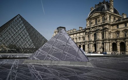 Jak informuje „The Guardian” dzieło francuskiego artysty powstawało od 26 a 29 marca. Gigantyczna instalacja, która zajmowała niemal cały plac przed muzeum w Luwrze została pokazana 30 marca. Dzieło Francuza zatytułowane „The Secret of the Great Pyramid” tworzyło 400 woluntariuszy. Wykonane zostało z ponad dwóch tysięcy specjalnie zaprojektowanych przez JR pasków papieru i z lotu ptaka sprawiało wrażenie iluzji optycznej - ogromnej dziury w ziemi.