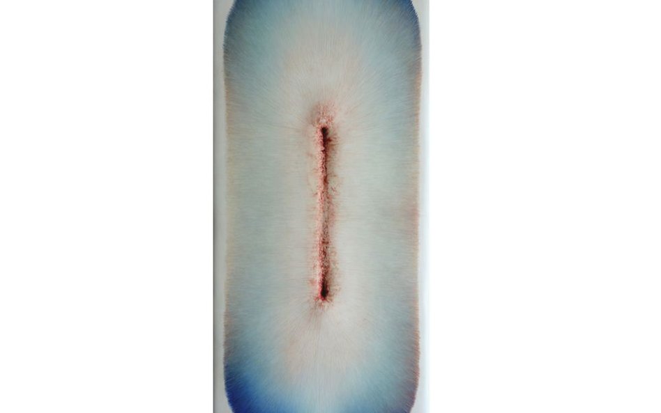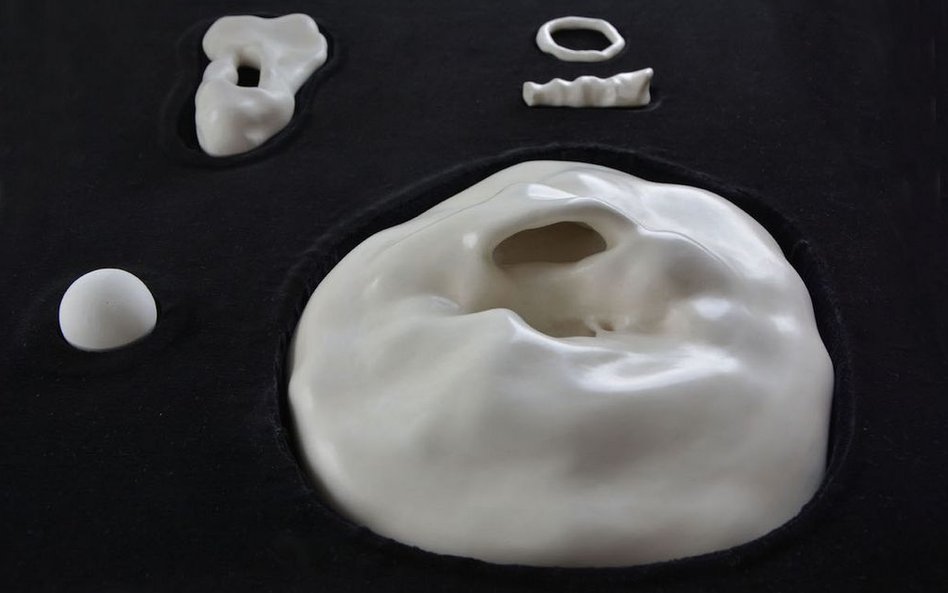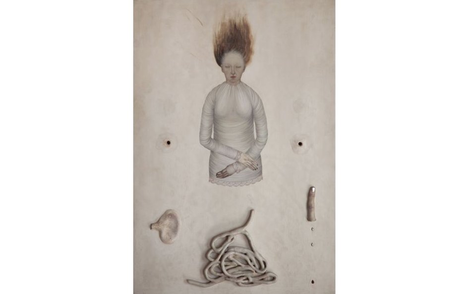 – Wyjątkowa jest jedna z jej prac z 2005 roku - obraz na desce z reliefem w zaprawie kredowej – opowiada kurator wystawy Andrzej Pawełczyk. - Pokazuje pół-portret kobiety z przymkniętymi oczami, ze skrzyżowanymi dłońmi dopełniony elementami biologicznymi - niesamowity rodzaj obrazu religijnego. Ta artystka jest osobna i wyjątkowa. Jej prace poruszają ontologiczne tematy związane z przemijaniem. W jej sztuce ciało stanowi medium, poprzez którego wiwisekcję, rozkład - szuka tego, co duchowe. To głęboko religijna sztuka mimo, że unika typowych dla sztuki religijnej atrybutów. Do tego, oglądając prace Magdy Moskwy ma się wrażenie oglądania malarstwa tablicowego z gotyku albo średniowiecza, czyli bogactwa warsztatu - laserunki, warstwy, zaprawy gipsowe, zaprawy kredowe, bardzo staranny realizm, znakomity warsztat malarski. To relikwiarze współczesności.