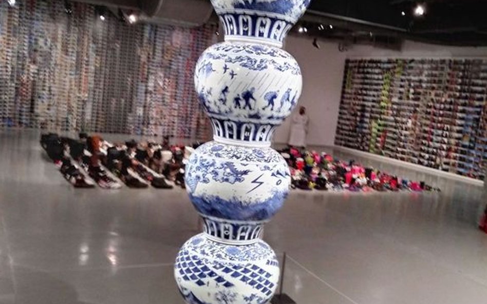 Instalację „Pralnia" uzupełnia słup z chińskiej porcelany, na którym namalowano historię imigrantów. Przemoc i głód w kraju, skąd przybyli, przeprawę przez morze i w końcu niezbyt ciepłe przywitanie na Starym Kontynencie. Obok rzeźba „Opona": trzy koła ratunkowe, dętki z marmuru. Hołd dla tych, którzy poszli na dno. Dzieło Ai Weiweia po raz pierwszy pokazano pod koniec 2016 r. w Nowym Jorku. Odtąd podróżuje po świecie. Drugim przystankiem jest katarska Ad-Dauha. W czerwcu pojedzie dalej.