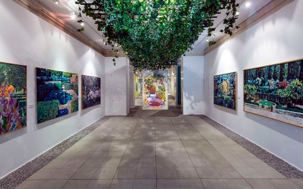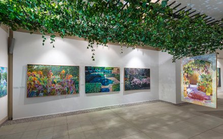 Początek ekspozycji przywołuje te właśnie wspaniałe, radosne ogrody, najlepiej znane w twórczości artysty. Widz ma wrażenie, że spaceruje po ścieżkach oranżerii lub tajemniczego parku, gdzie można zapomnieć o wszystkich troskach. Chwila jak u impresjonistów zdaje się trwać wiecznie, sycąc oczy grą światła i koloru w pełnym blasku słońca.