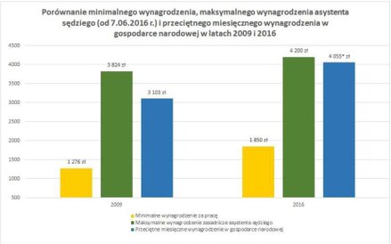 W analizie Ogólnopolskiego Stowarzyszenia Asystentów Sędziów (OSAS) zwrócono uwagę, że środki przeznaczone na wynagrodzenia asystentów sędziów w 2016 r. wzrosły w porównaniu do 2015 roku – z ponad 140 mln zł do niemal 169 mln zł (wzrost wyniósł łącznie kwotę 28,33 mln zł). Jednocześnie doszło do rekordowego wzrostu liczby etatów asystentów sędziów o 356 i obecnie na tym stanowisku zatrudnionych jest 3.807 osób.