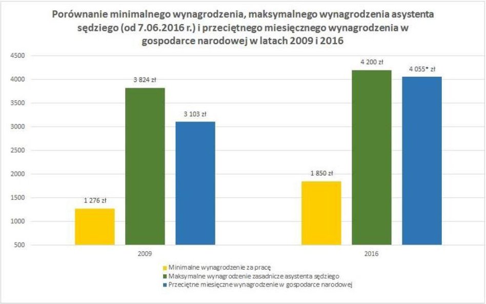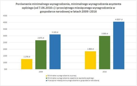 Dalej zwrócono uwagę, że w 2016 r. nastąpił wzrost średniego wynagrodzenia asystentów sędziów (o 315 zł) – podobnie jak w przypadku wcześniejszych danych – taka sytuacja nastąpiła po raz pierwszy od 2012 r.