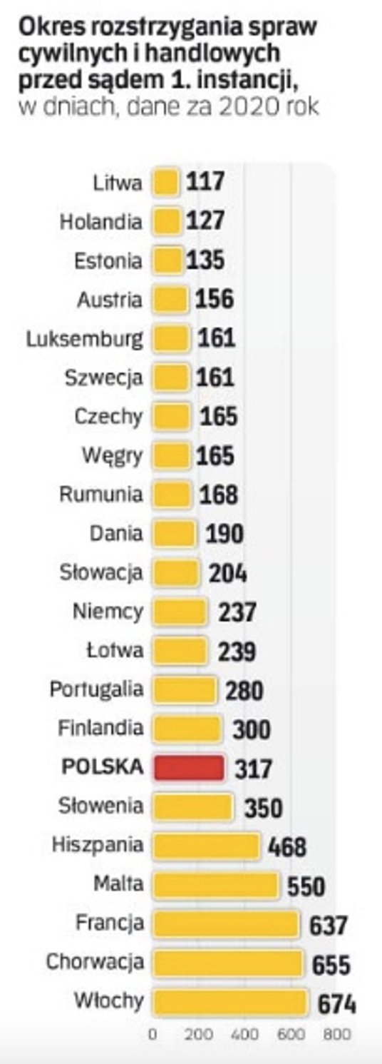 Zestawienie pokazuje skuteczność sądownictwa mierzoną przede wszystkim długością postępowania. Dla Polski wnioski płynące z tego opracowania nie są optymistyczne.