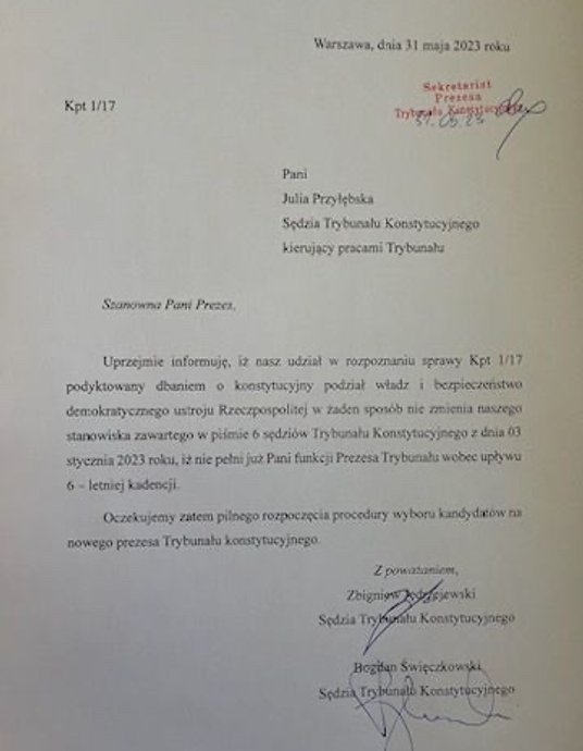 Sędziowie oświadczyli, że wobec upływu kadencji oczekują pilnego rozpoczęcia procedury wyboru kandydatów na nowego prezesa Trybunału Konstytucyjnego.