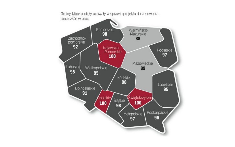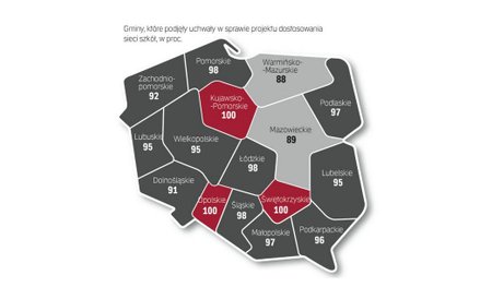 Blisko 98 proc. rad powiatów oraz 95 proc. rad gmin przesłało już do zaopiniowania przez kuratorów oświaty uchwały w sprawie projektu nowej sieci szkół. Według przedstawicieli Ministerstwa Edukacji Narodowej oznacza to, że ponad 95 proc. samorządów jest już gotowych do reformy oświaty.