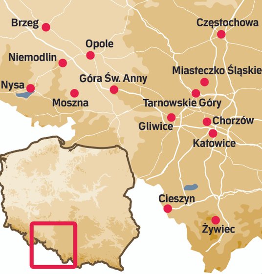 Wisła, Szczyrk, Żywiec, Maków Podhalański, Oświęcim, Istebna, Ujsoły, Jabłonkowo (Zaolzie)