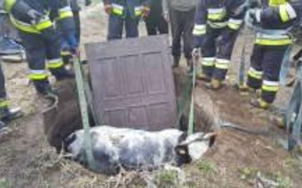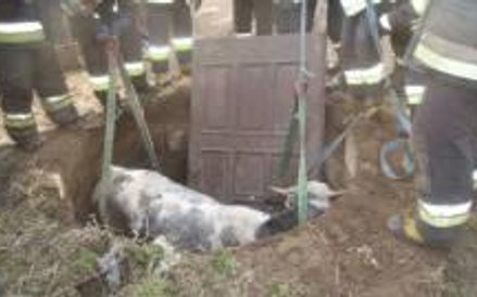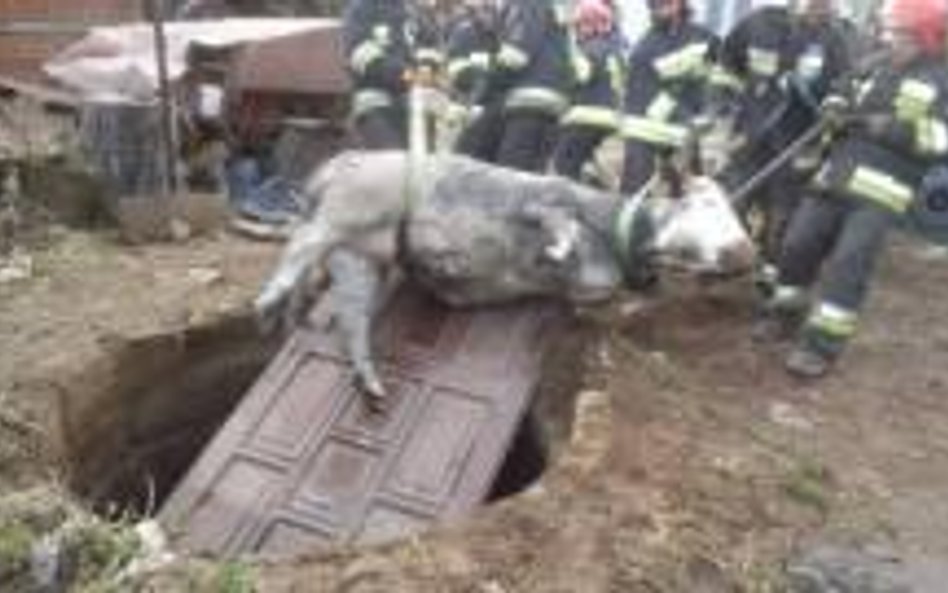 Zwierzę wpadło do kilkumetrowego silosu w sobotę po południu. Nie mogło samo się z niego wydostać.