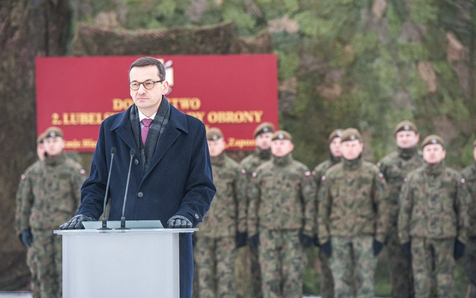 - Dziękuję wam za wasze decyzje i jestem pewien, że przyczynicie się do utrwalenia bezpieczeństwa państwa polskiego, dzięki temu będziemy mogli budować silną Polskę. Podjęliście się czegoś bardzo ważnego - obrony naszych granic, a w czasach pokoju - pomocy ludziom - powiedział Morawiecki. Premier uczestniczył we Włodawie (woj. lubelskie) w uroczystości złożenia przysięgi wojskowej przez żołnierzy 2. Lubelskiej Brygady Obrony Terytorialnej im. Hieronima Dekutowskiego ps. "Zapora".
