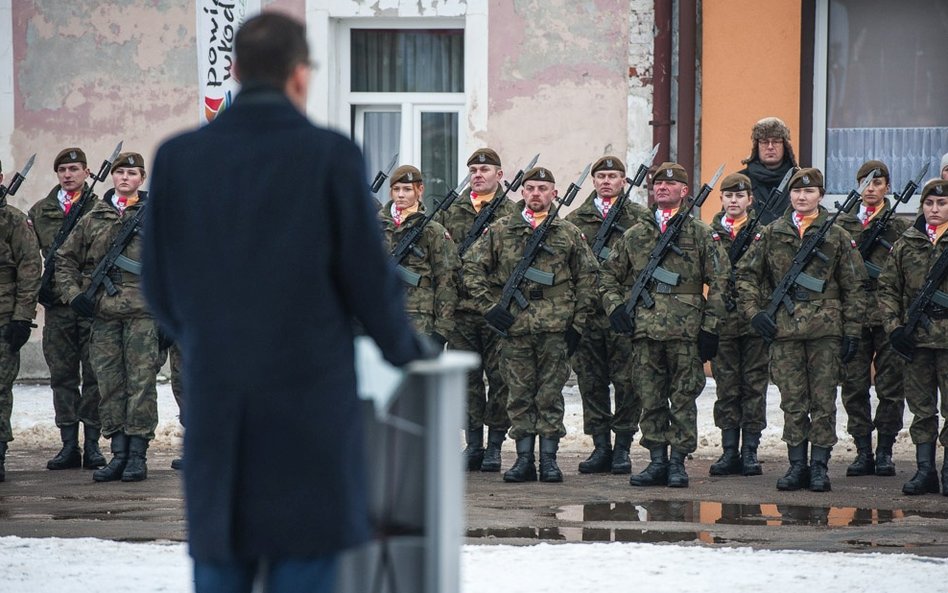 - Dzisiaj z dumą odbudowujemy wielkie tradycje Wojska Polskiego - mówił premier Mateusz Morawiecki w czasie uroczystości złożenia przysięgi przez żołnierzy Wojsk Obrony Terytorialnej we Włodawie.