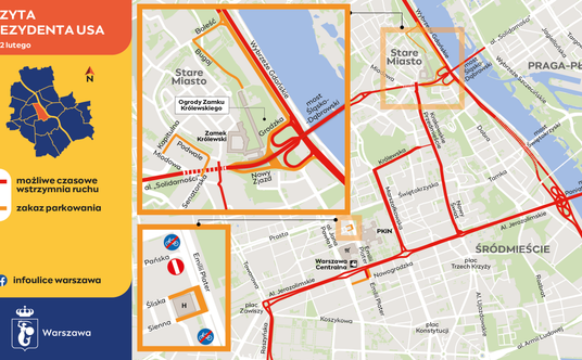 Od 21 do 22 lutego wprowadzone zostaną duże zmiany w ruchu drogowym, które obejmą przede wszystkim rejon ścisłego centrum Warszawy, a także Starego Miasta. Ze względu na wymogi organizacji i bezpieczeństwa w czasie wizyty prezydenta USA i przedstawicieli państw Europy Środkowo-Wschodniej na wielu ulicach parkowanie będzie niedozwolone.