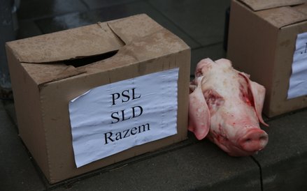 Manifestującym towarzyszą hasła, m.in. "Stop psuciu demokracji". Na jednym z transparentów przypominają oni słowa prezydenta Lecha Kaczyńskiego o tym, że zgodnie z zapisami Konstytucji RP orzeczenia Trybunału Konstytucyjnego mają moc powszechnie obowiązującą.
