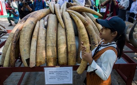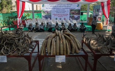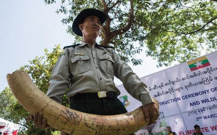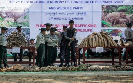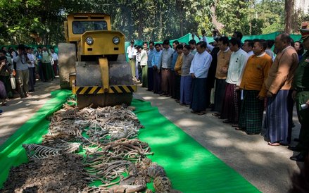Skonfiskowane kości słoniowe i inne części zwierząt zostały zniszczone w Mjanmie podczas ceremonii upamiętniającej Światowy Dzień Dzikiej Przyrody