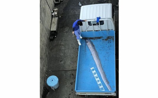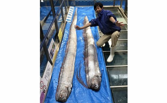 Rybacy byli w szoku, gdy znaleźli parę srebrzystych ryb - pisze agencja AFP. Większy z okazów miał długość czterech metrów. - Dotąd tylko słyszałem historie o tej rybie - powiedział Takashi Yamauchi z japońskiej spółki rybołówczej Yomitan. - Kiedy zobaczyłem je w porcie, byłem bardzo zszokowany - dodał.