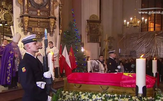 Zmarłego żegna o. Ludwik Wiśniewski, dominikanin, honorowy obywatel Gdańska. - Gdańsk słusznie się nazywa i wielokrotnie Paweł to powtarzał, miastem wolności i solidarności. Dzisiaj przeżywamy tu w Gdańsku nowy dziejowy, historyczny moment. Cała Polska czeka, może nie tylko czeka, żeby z Gdańska wyszło przesłanie, które dotrze do każdego Polaka i które przywróci moralną równowagę w naszym kraju i naszych sercach. W ostatnich dniach wielu ludzi próbowało formułować to przesłanie, które wynika ze śmierci Pawła. Jestem przekonany, że Paweł chce, abym wypowiedział następujące słowa: trzeba skończyć z nienawiścią, trzeba skończyć z nienawistnym językiem, trzeba skończyć z pogardą, trzeba skończyć z bezpodstawnym oskarżaniem innych.
