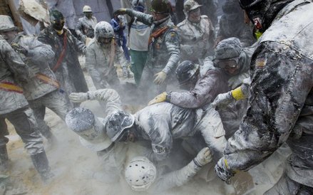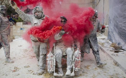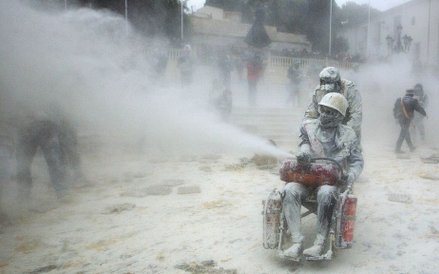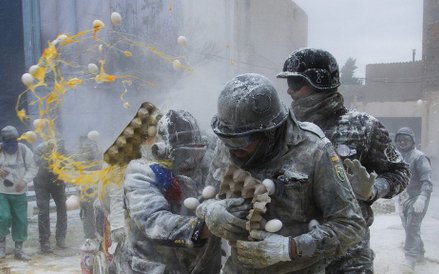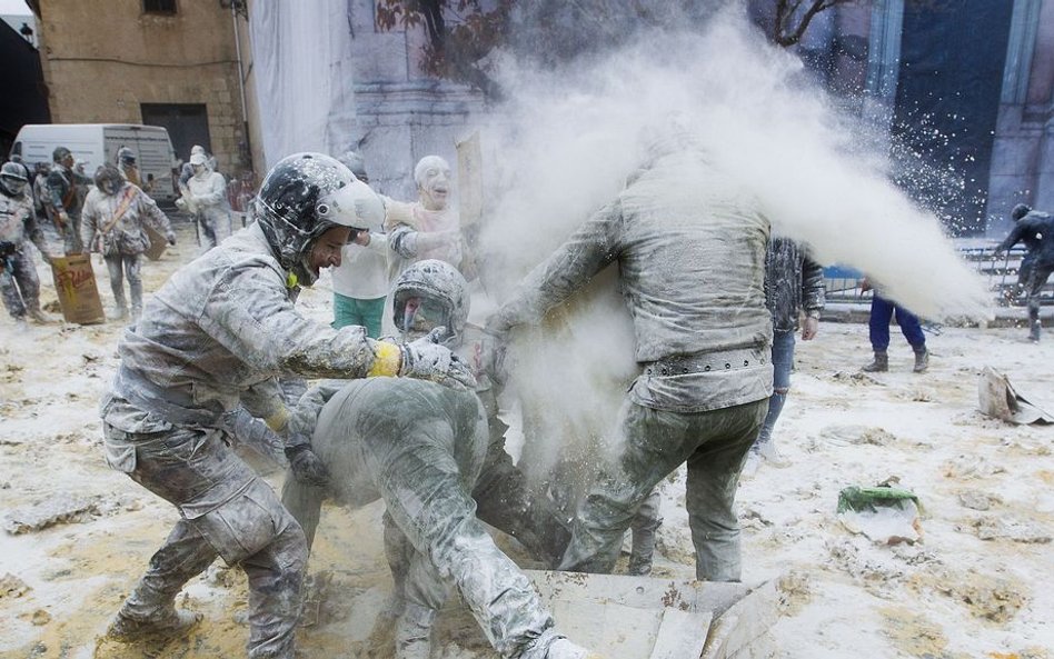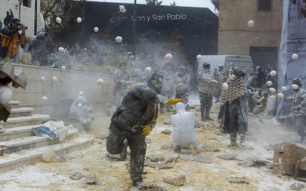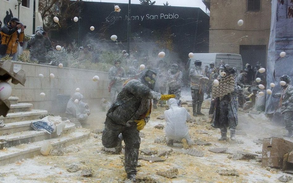 Na piątkowe wydarzenie w mieście składała się chaotyczna bitwa z wykorzystaniem tysięcy jaj oraz paczek mąki, uzupełniona wystrzeliwaniem fajerwerków. Przez jeden dzień w roku w mieście, położonym we wschodnim regionie Alicante, odbywa się walka o przejęcie kontroli nad miastem.