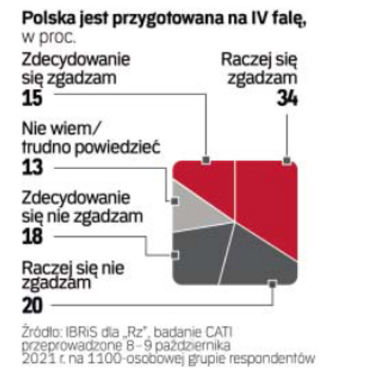 Choć z tygodnia na tydzień można zauważyć spore wzrosty zachorowań i zgonów, Polacy do czwartej fali koronawirusa podchodzą spokojnie. Jak wynika z sondażu IBRiS opracowanego na zlecenie „Rzeczpospolitej", blisko połowa ankietowanych uważa, że Polska jest przygotowana do walki z pandemią.