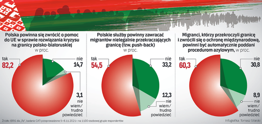 W pierwszej kwestii mało który z badanych ma wątpliwości: ponad 82 proc. uważa, że Polska „powinna się zwrócić o pomoc do Unii Europejskiej w sprawie rozwiązania kryzysu na granicy polsko-białoruskiej", niespełna 15 proc. jest temu przeciwna, a tylko 3,2 proc. nie ma w tej kwestii zdania. – Z jednej strony badani chcieliby się podzielić z UE odpowiedzialnością za moralny wymiar kryzysu – mówi Marcin Duma, szef IBRiS. – Ale naszym mitem narodowym jest mit Polski będącej przedmurzem chrześcijaństwa i europejskiej kultury, więc musimy sami, jak Ordon oparty o armatę, wytrwać na placówce – dodaje.Zdaniem Dumy, gdyby nie było wyrzutów sumienia, nie pojawiłaby się też jednak kwestia dzielenia odpowiedzialności moralnej.