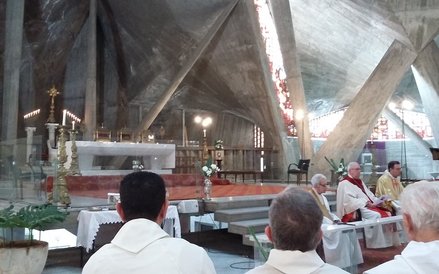 Przestronna, iluminowana barwnymi witrażami, ma przypominać pustynny namiot. Na co dzień nie jest używana, ale w dzień Wszystkich Świętych odbywa się tu wcześnie rano cicha i dyskretna msza. Może setka wiernych i kilkunastu celebransów. Wierni to głównie Francuzi, którzy zostali w Algierze, epigoni dawnych czasów. Do mszy przygrywa gitarzysta. Śpiewa międzynarodowy chórek.
